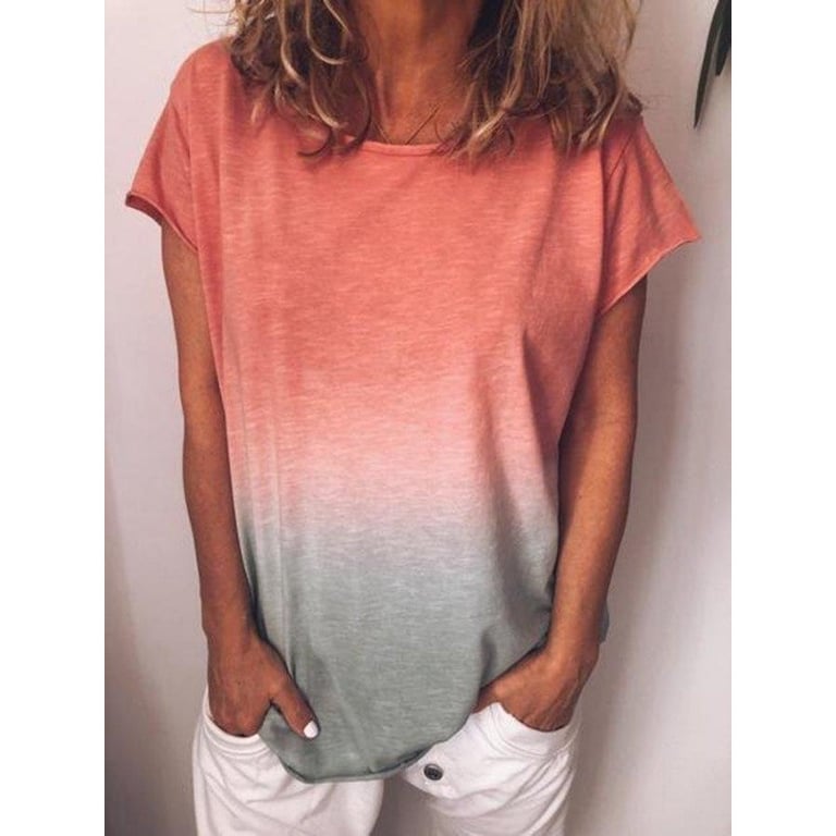Camiseta de mujer de manga corta. Corte holgado con escote redondo. Impresión con degradado de color. Disponible en varias variantes.