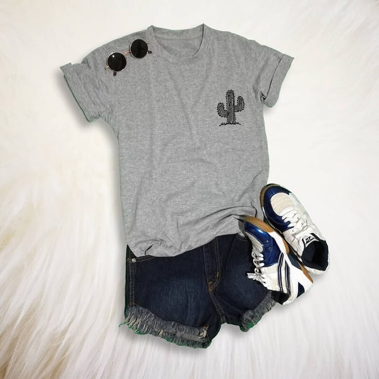 Camisa de mujer de manga corta y escote redondo. Impresión en la parte delantera. Diseño con cactus. Corte recto y holgado.