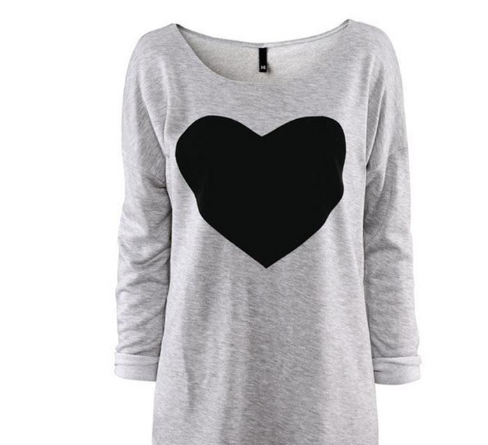 Sexy camiseta gris con un diseño de corazón negro en el pecho.