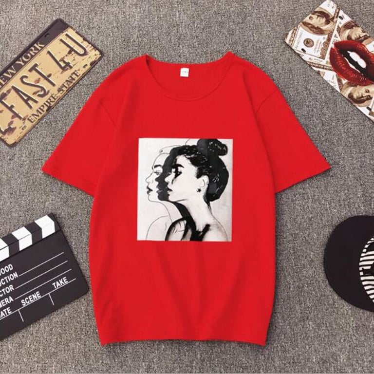 Camisa de mujer con un original estampado de colores en la parte delantera. Corte holgado oversize. Manga corta y escote redondo. Disponible en varias opciones.
