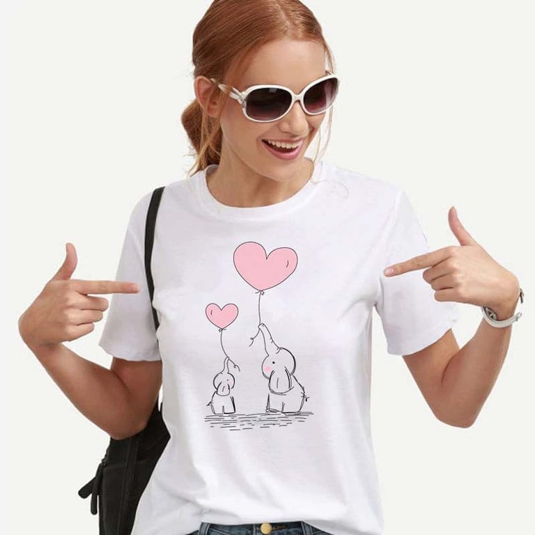 Estilosa camiseta de mujer con motivo de elefantes, que es adecuada para muchas ocasiones. ¡Esté cómoda y a la moda! El envío es gratuito.