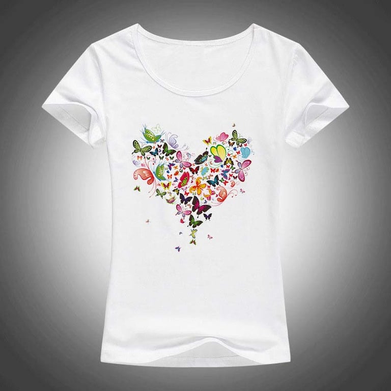 Camisa de mujer estilosa con mariposas en forma de corazón, ideal para primavera y verano. La agradable combinación de colores iluminará todo el atuendo y te verás realmente genial. Prepárate para la temporada 2025.