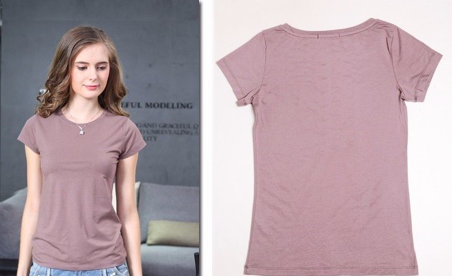 Camisa de mujer de manga corta sin escote. Es muy elástica, por lo que es adecuada para todas las actividades al aire libre.