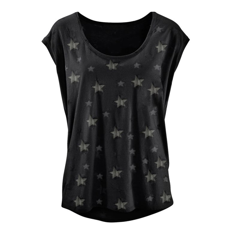 Una camiseta sencilla para un atuendo de verano con un suave estampado de estrellas. Su corte práctico será cómodo en cualquier ocasión.