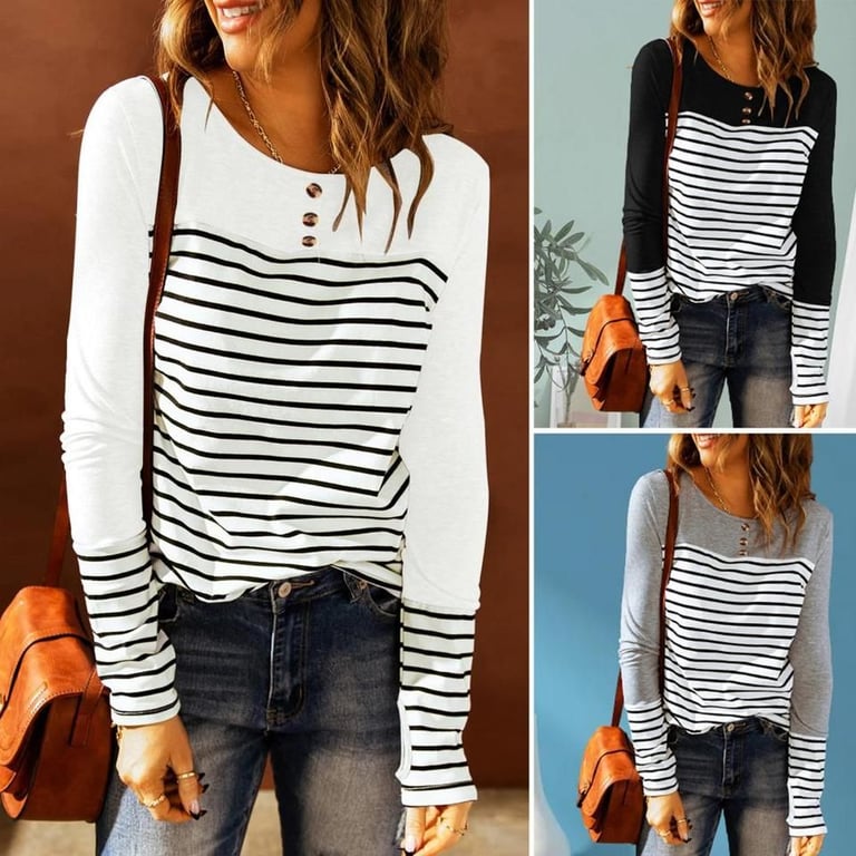 Estilosa camisa de rayas para mujer, adecuada para el uso diario.
