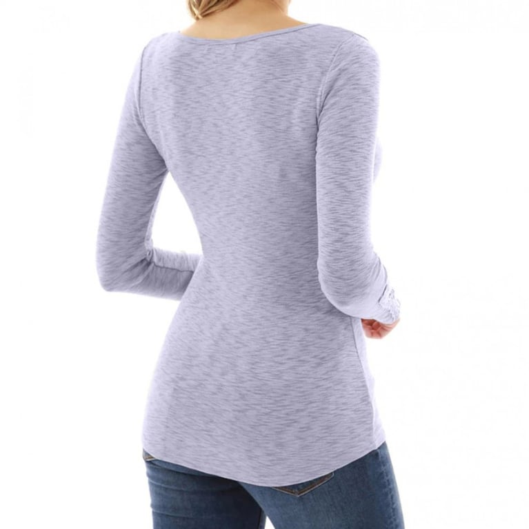 Camisa de mujer de manga larga y escote redondo con cierre de botones. Las mangas están decoradas con un bordado discreto. Disponible en tres variantes de color.