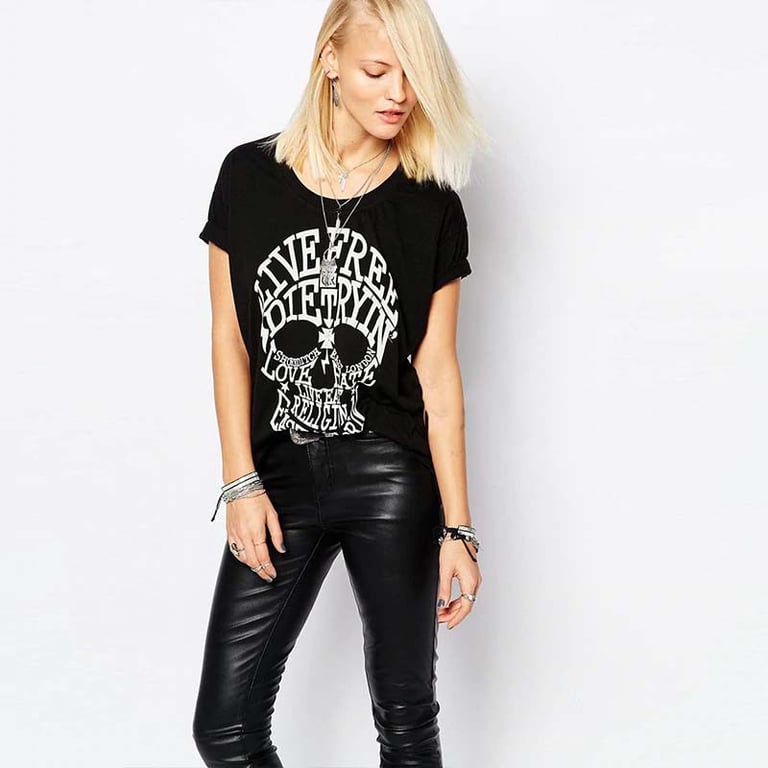 Una camiseta negra estilosa con estampado, en la que lucirás genial en cualquier circunstancia.