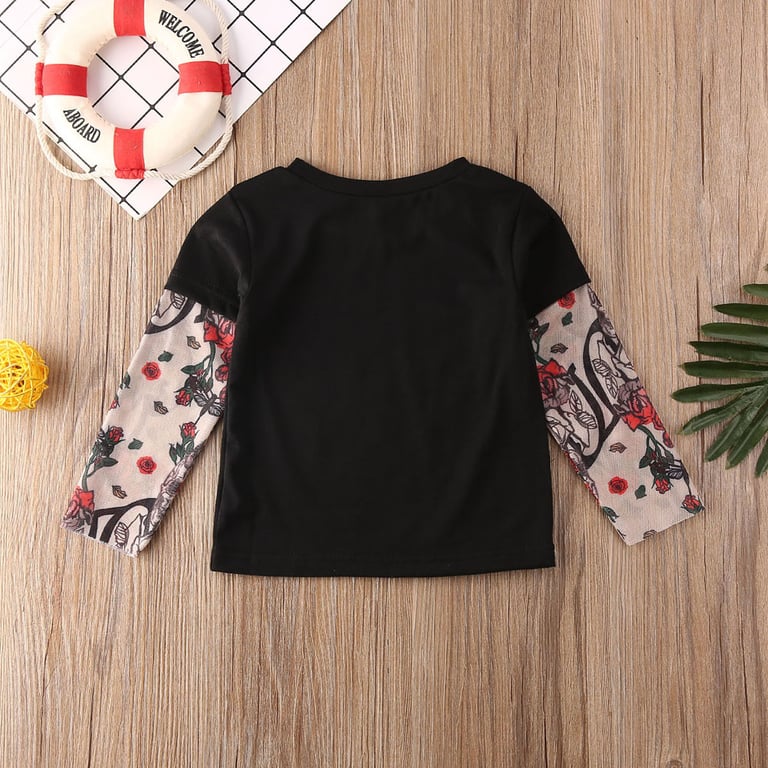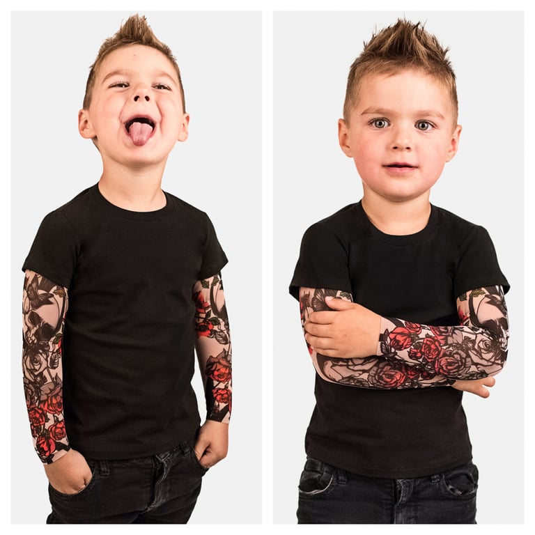 Camisa de tendencia para niño con manga larga de tatuaje – negra