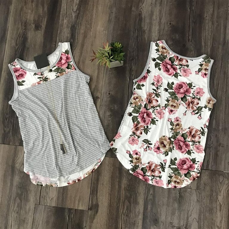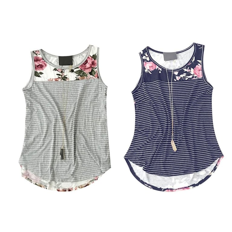 Camiseta de tirantes a rayas con flores para mujer