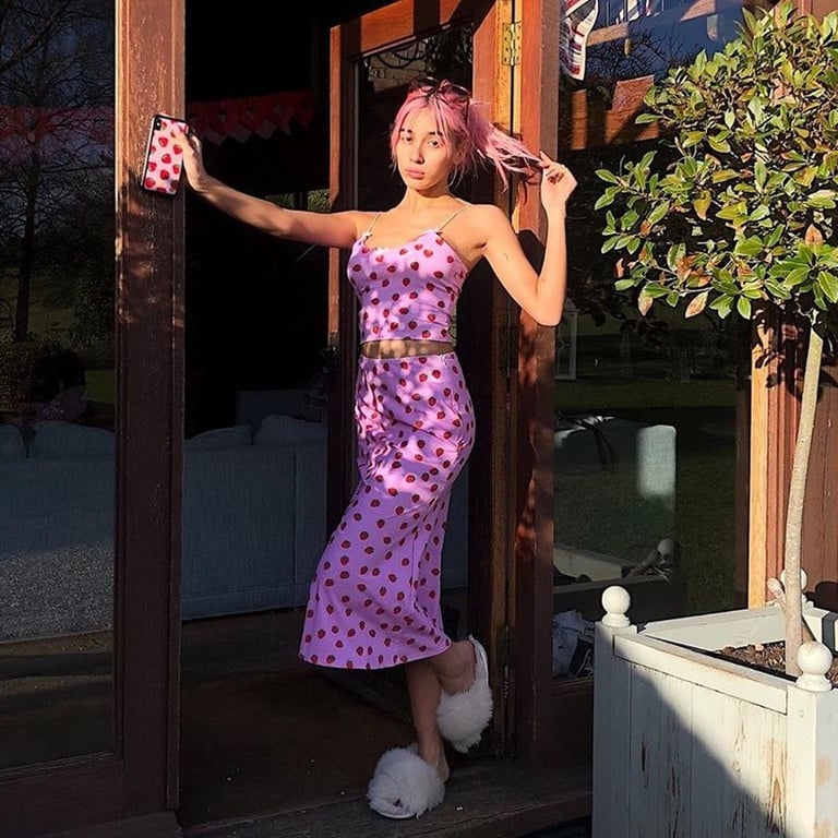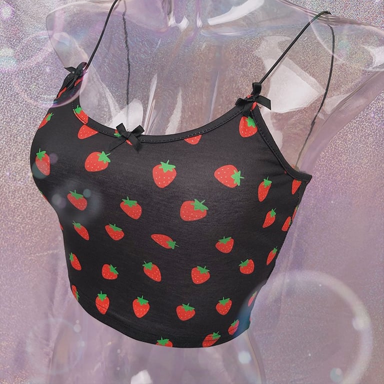 Camiseta de tirantes mini para mujer con estampado de fresas.