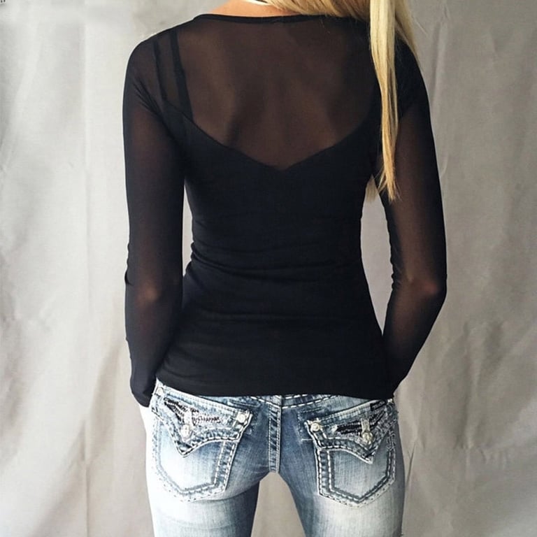 • Etiquetas: Camiseta de mujer, blusa de mujer, detalles de malla, escote de malla, escote atrevido, blusa elegante, camiseta elegante, ropa de mujer