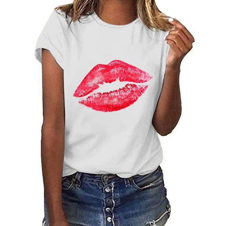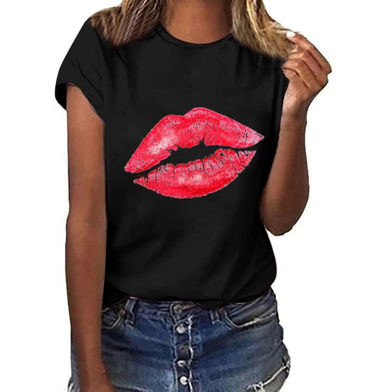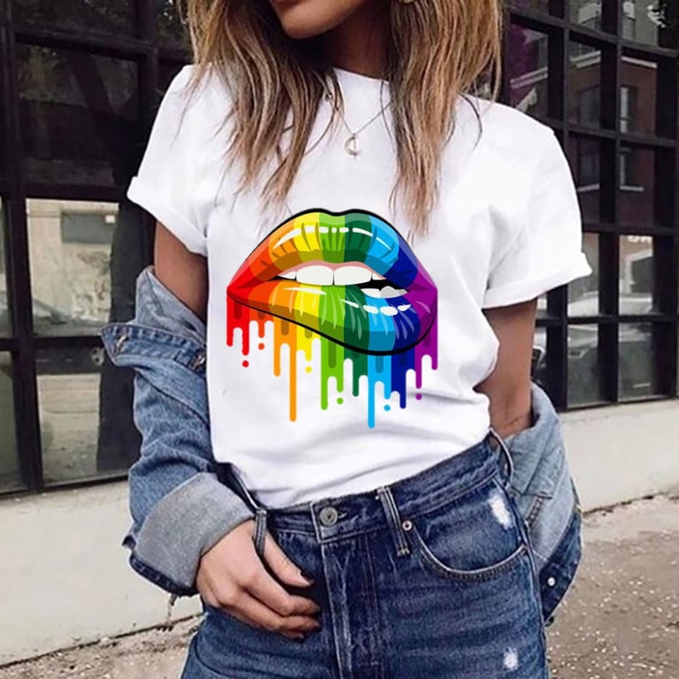 • Etiquetas: camiseta de mujer, camiseta con estampado, camiseta moderna, manga corta, agradable, de calidad, mujeres, ropa, diaria, labios, arcoíris
