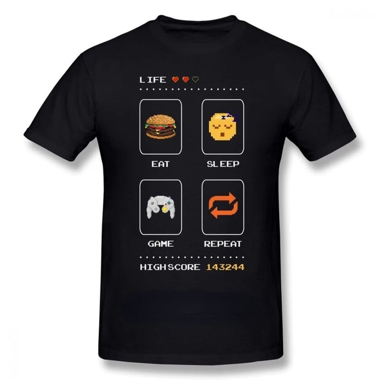 Camisa moderna de hombre con manga corta y un original y divertido estampado de artículos de uso diario para jugadores.