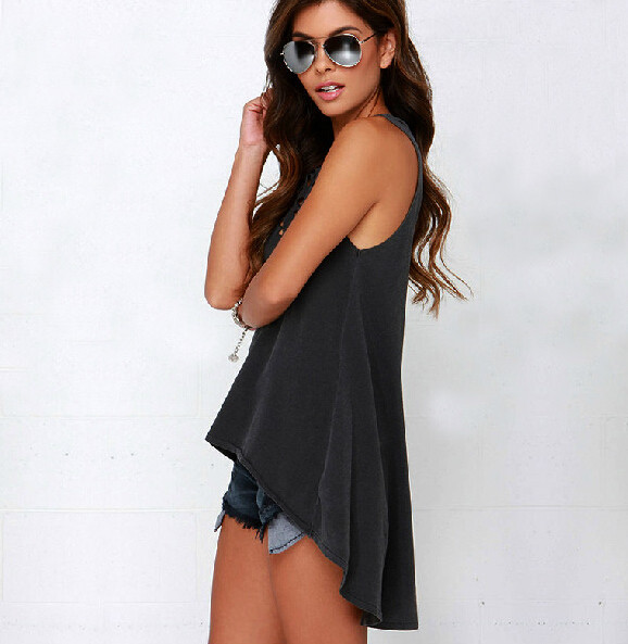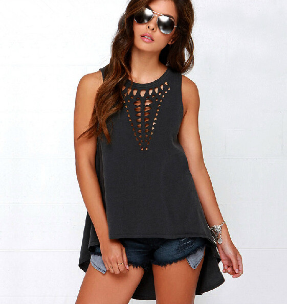 Camiseta negra sin mangas para mujer con escote decorado Tabby