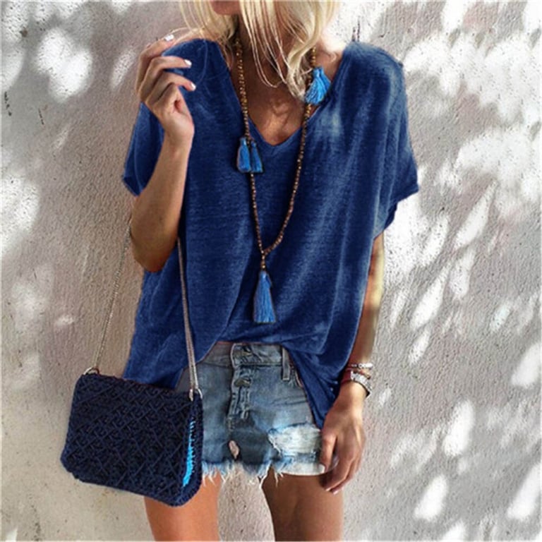 Camisa de mujer oversize con mezcla de colores. Corte suelto y cómodo con mangas cortas. Disponible en muchas variantes de color.