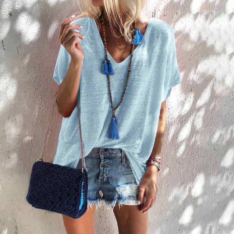 Camiseta de mujer oversize con mezcla de colores. Corte suelto y cómodo con mangas cortas. Disponible en muchas variantes de color.