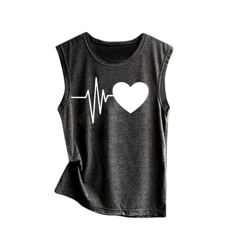 Camiseta sin mangas para mujer con estampado de corazón