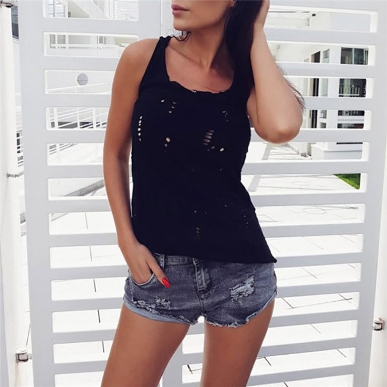Top de tirantes para mujer con tirantes más anchos y escote redondo. Corte recto y suelto. Detalles decorativos de perforación. Disponible en varias opciones de color.