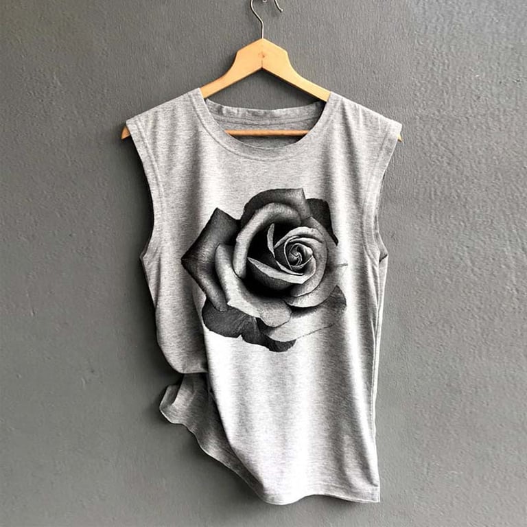 Estilosa camiseta sin mangas para mujer con estampado de rosa, que te iluminará en cualquier lugar.