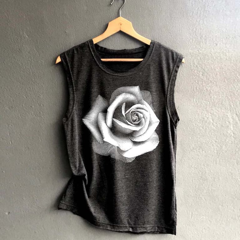 Estilosa camiseta sin mangas para mujer con estampado de rosa, que te hará brillar en cualquier lugar.