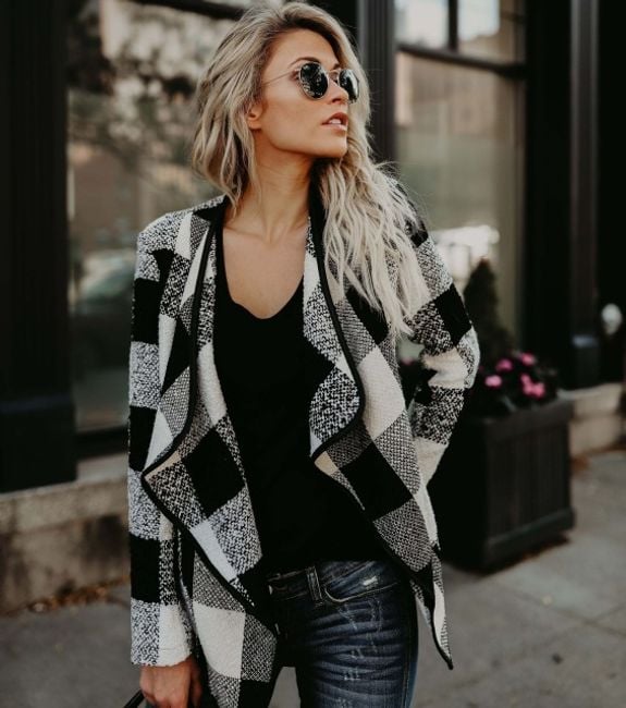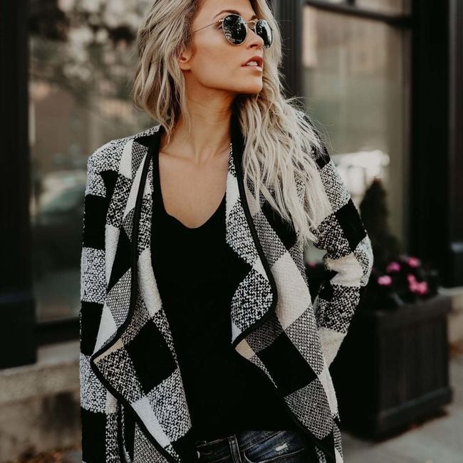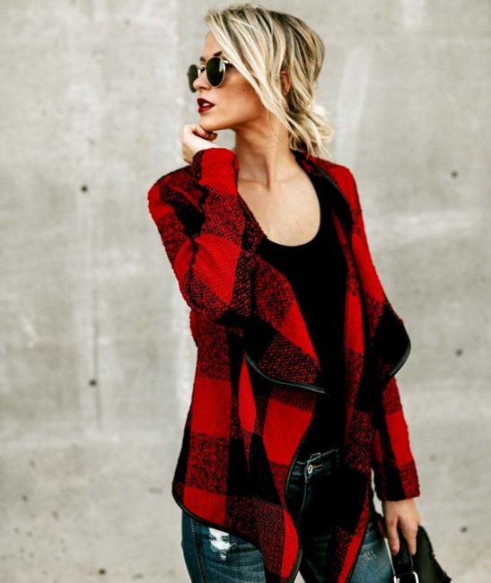 Este hermoso cárdigan a cuadros es una excelente prenda de moda para el clima de otoño o primavera. Tienes varias opciones de colores y tamaños.