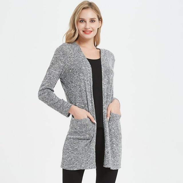Cardigan de mujer con bolsillos profundos y dobladillo ancho. El material de punto de calidad es ligeramente elástico y agradable al tacto.