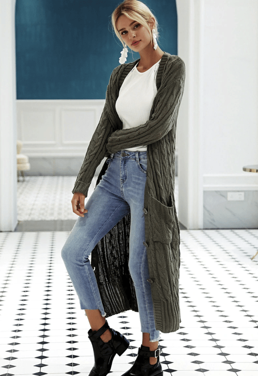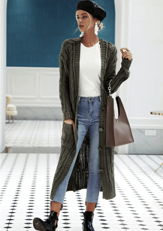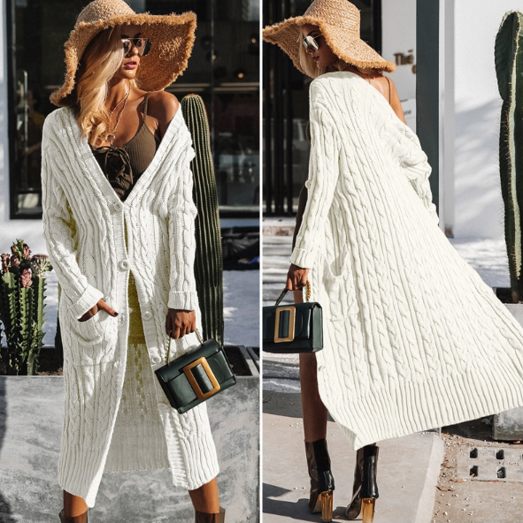 Cárdigan largo maxi de punto para mujer con bolsillos