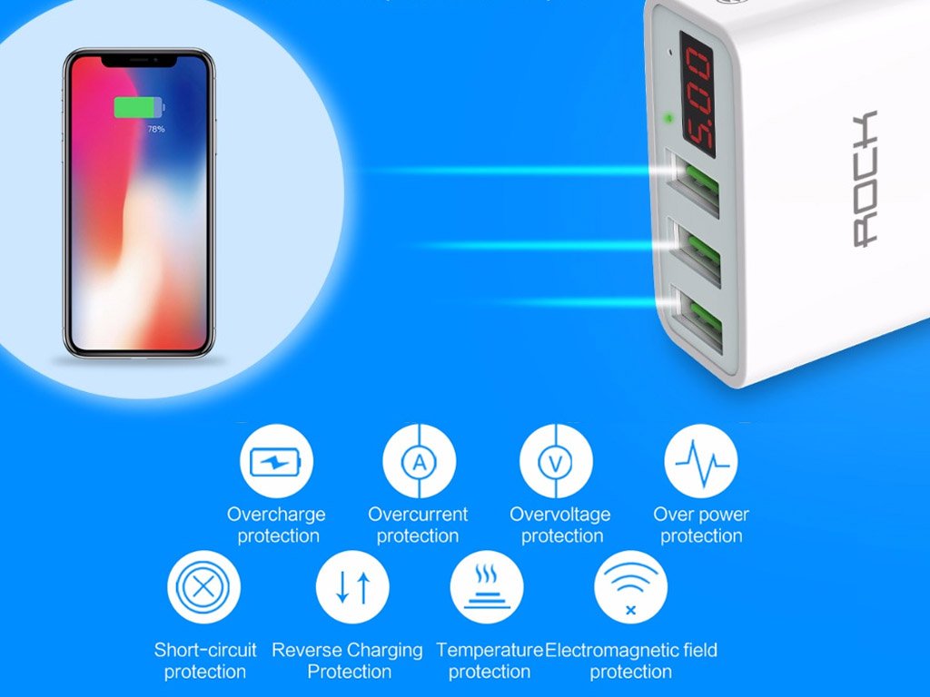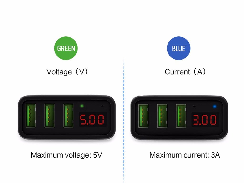Cargador USB de lujo para enchufe de red con pantalla LED, diseñado para tomas de corriente de tipo europeo o americano (según elección).