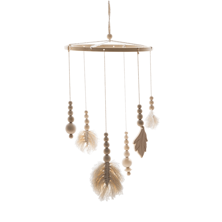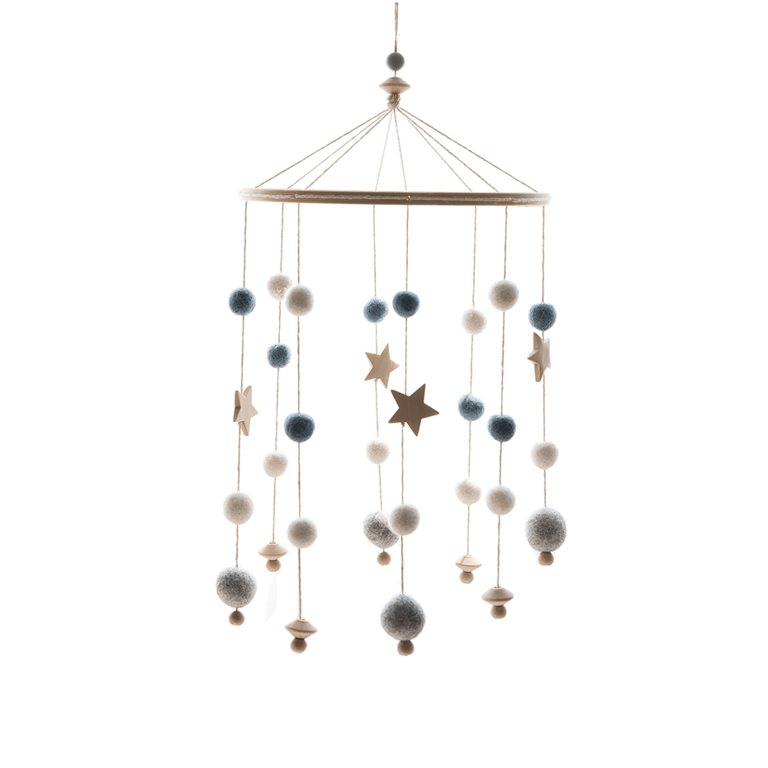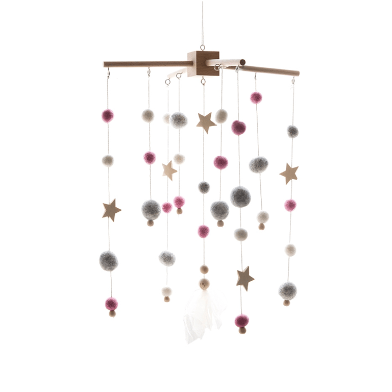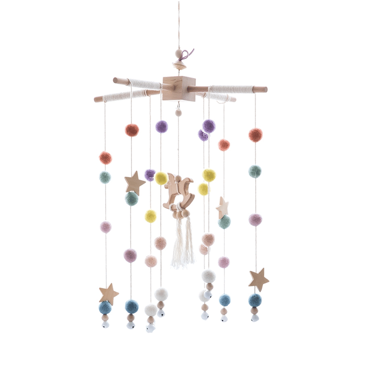 Carrousel para cuna con adorables cuentas y decoraciones coloridas.