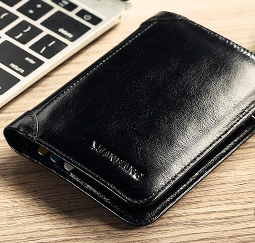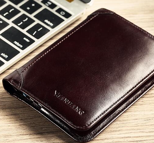 Hermosa y elegante cartera para hombre hecha de cuero genuino.