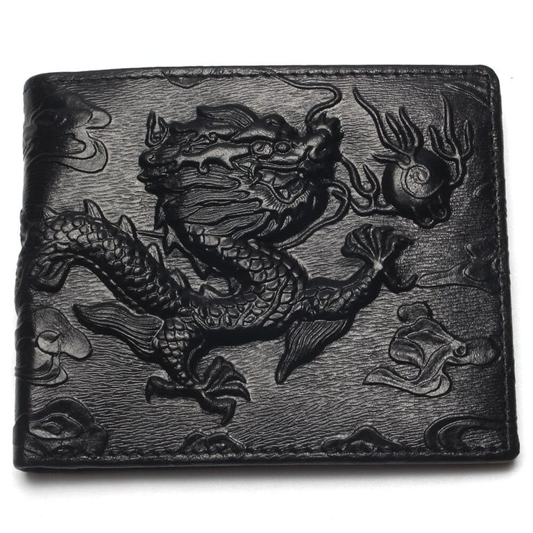 Cartera de cuero para hombre con dragón