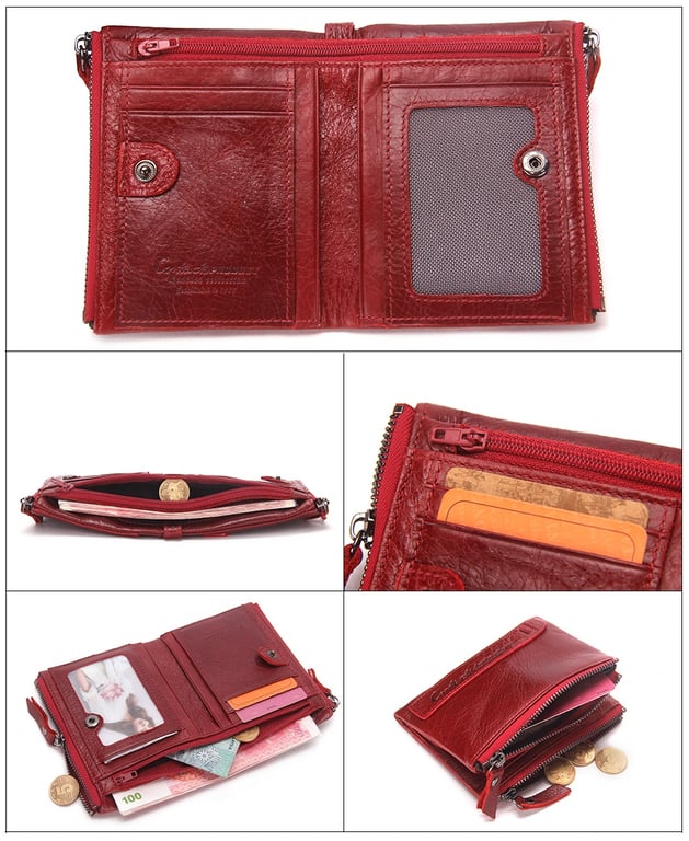 La cartera ofrece suficiente espacio para tarjetas y grandes compartimentos para billetes.