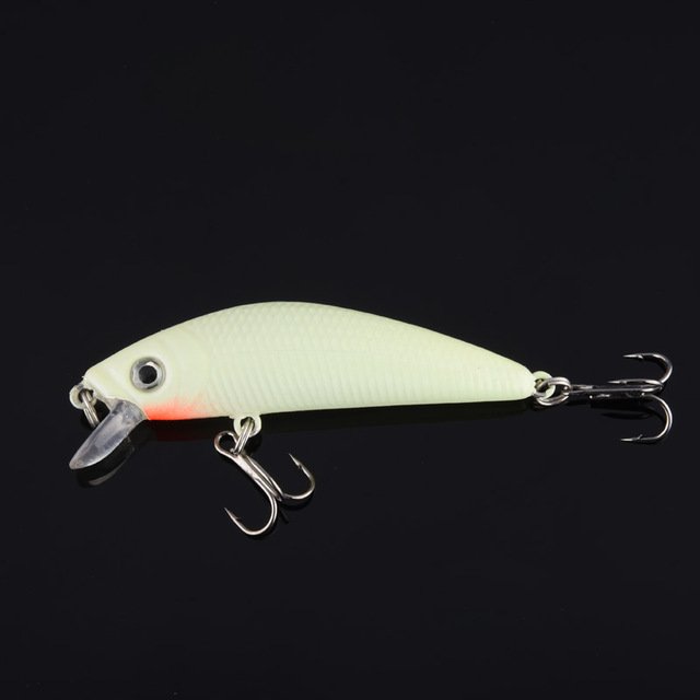 Este cebo luminoso en forma de pez es útil para pescar también en la oscuridad. Solo necesitas iluminar el cebo con la luz de una linterna frontal y podrás pescar incluso después del anochecer. En la parte final cuenta con un anzuelo triple de metal.