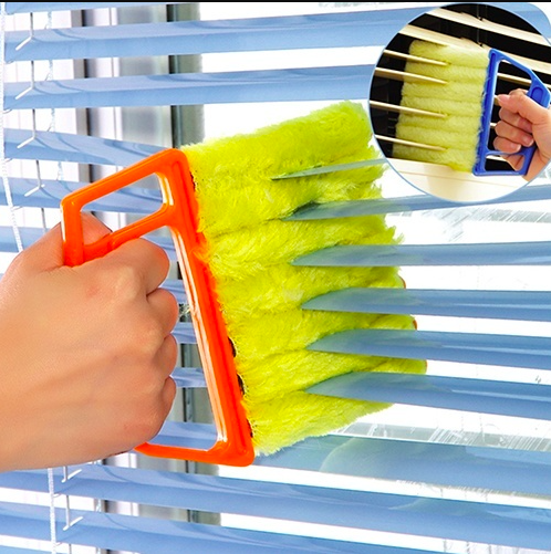 Cepillo para limpiar persianas, con el que puede limpiar hasta 6 persianas a la vez. Así, una ventana queda ordenada en un instante. Las suaves cerdas no rayan las persianas, pero eliminan todo el polvo. El cepillo se limpia muy fácilmente, solo hay que dejarlo en remojo en agua.