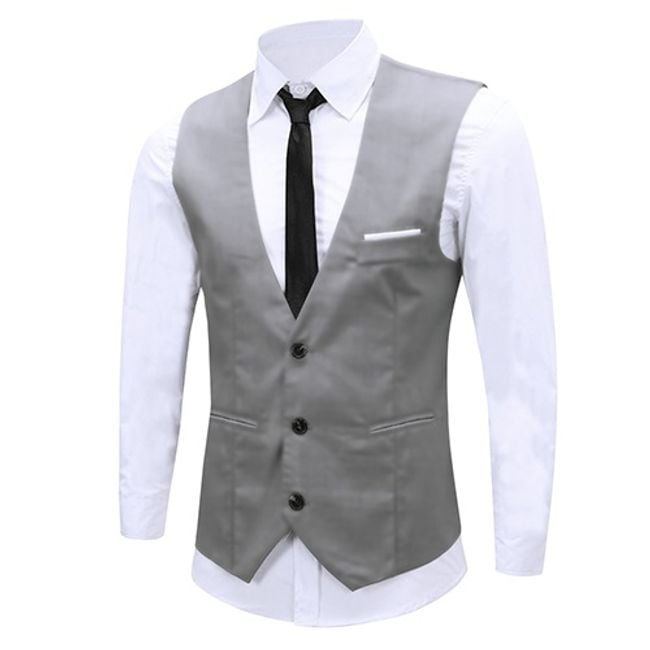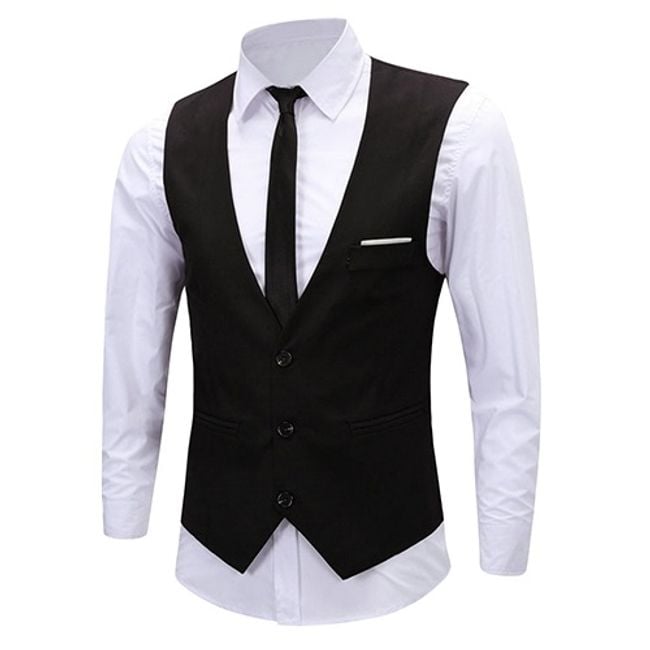 Chaleco elegante para hombres con esmoquin para eventos formales. Es perfecto para la elegancia formal, pero también informal, simplemente siempre que quieras impresionar. Está disponible en cuatro colores, se ajusta perfectamente y tiene un cierre de tres botones.