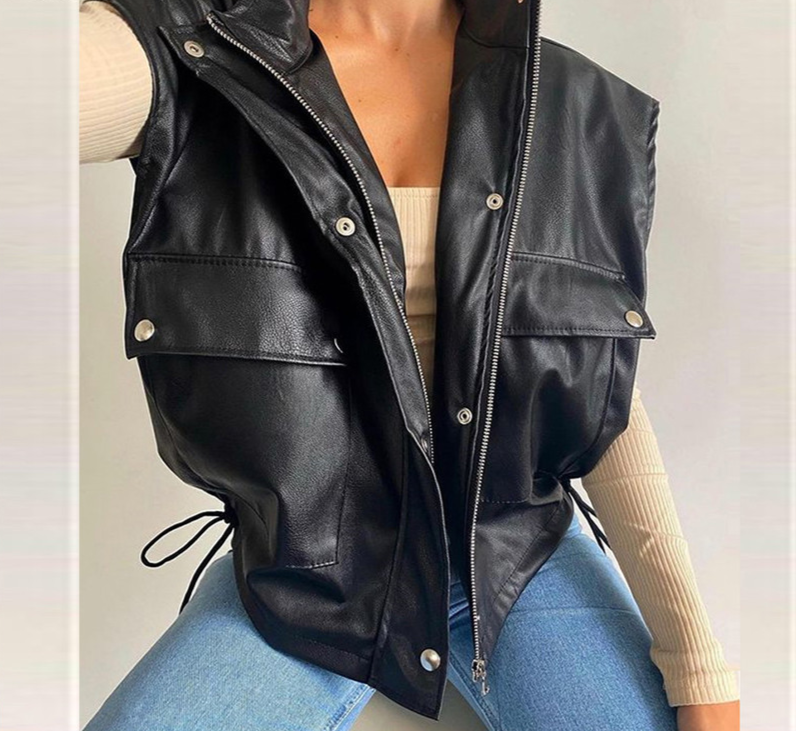 Chaleco de piel sintética casual para mujer – Colección 2025