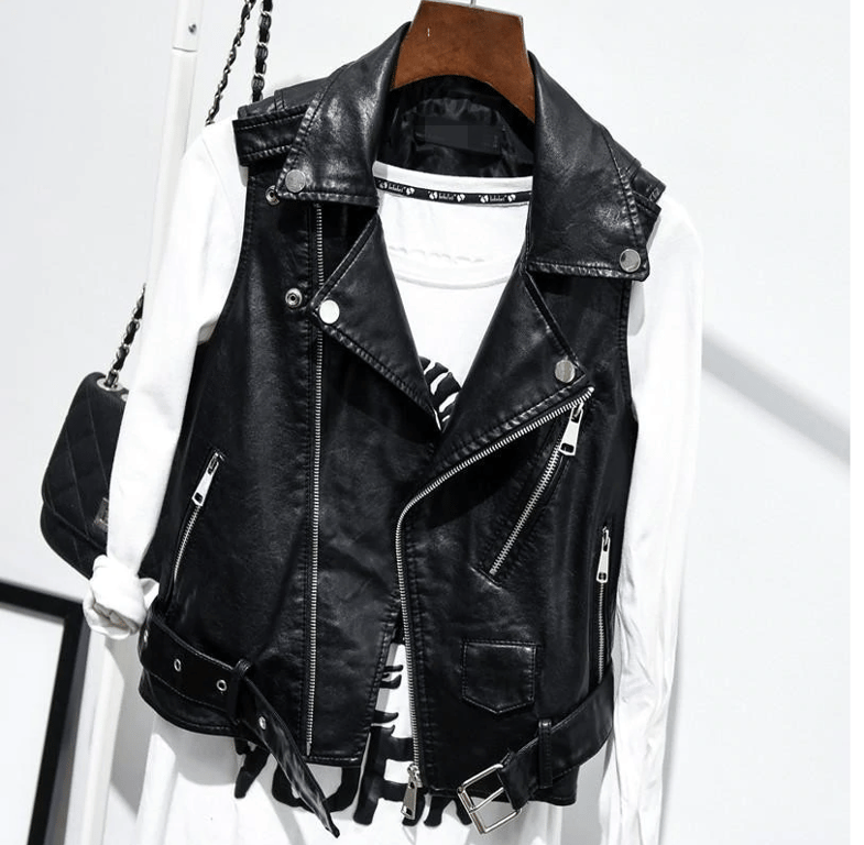 Chaleco de piel sintética de primavera con detalles plateados