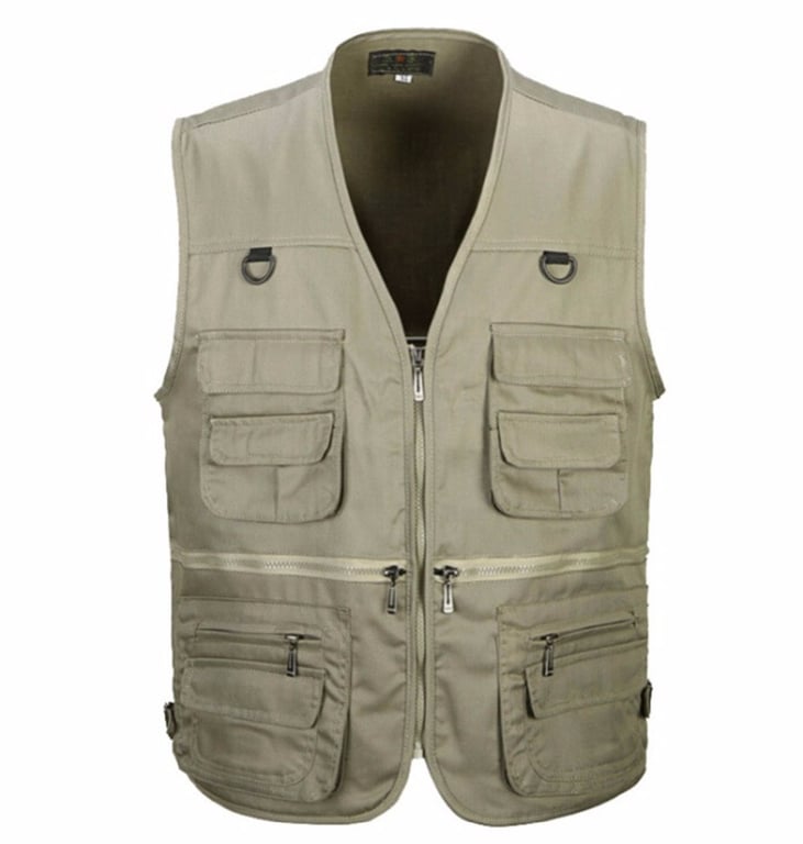 El chaleco es versátil y tiene muchos bolsillos.