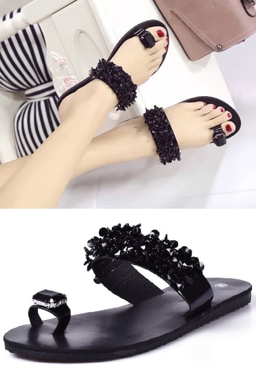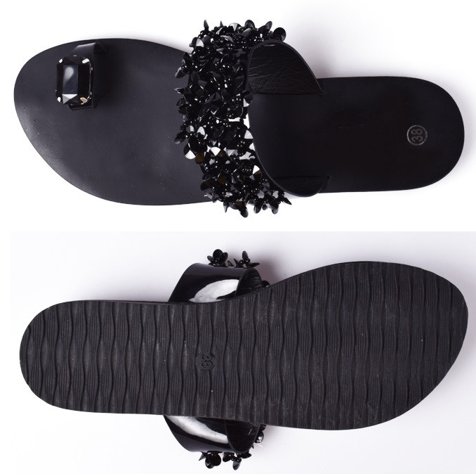 Chanclas de dedo para mujer con piedra Hoya - negras