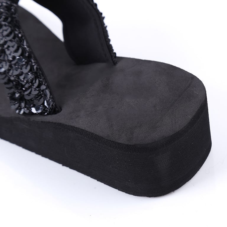 Chanclas de mujer con plataforma y lentejuelas Laylah - negras