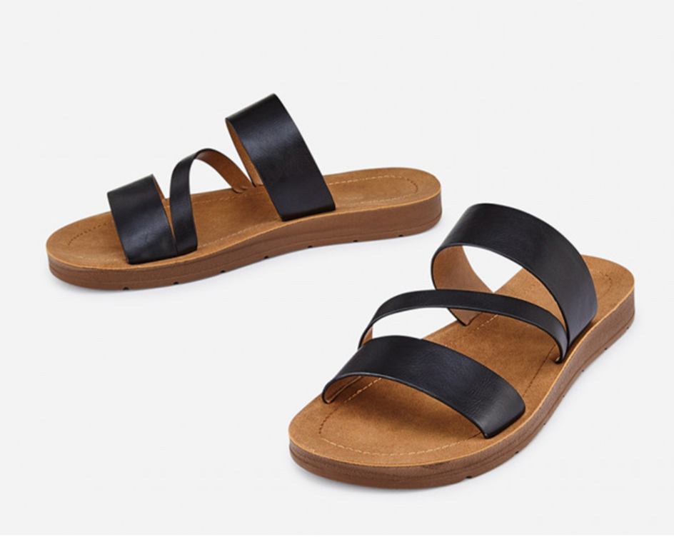 Punta abierta, diseño de tiras, con un bajo tacón.