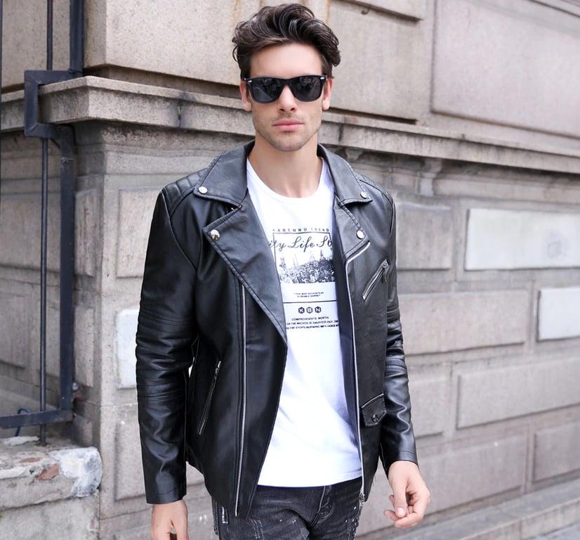 Con esta chaqueta de cuero estarás a la moda y con estilo.