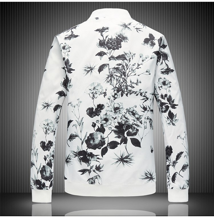 Vístete con esta hermosa chaqueta de flores en color blanco.