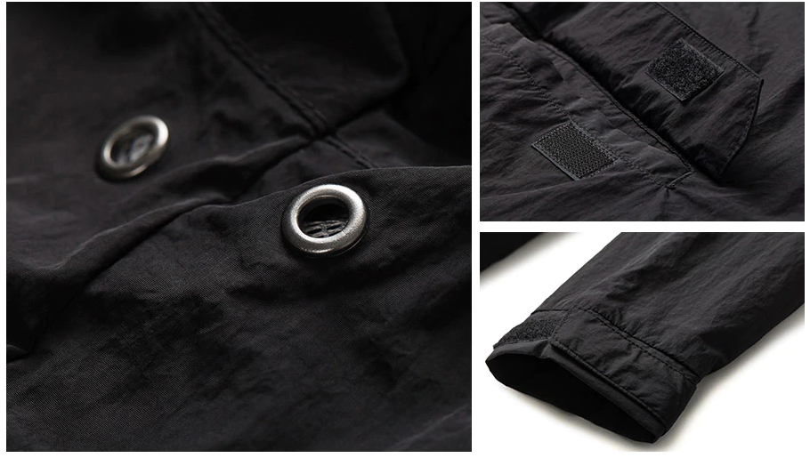 Con esta chaqueta de viento en color negro nunca te mojarás.