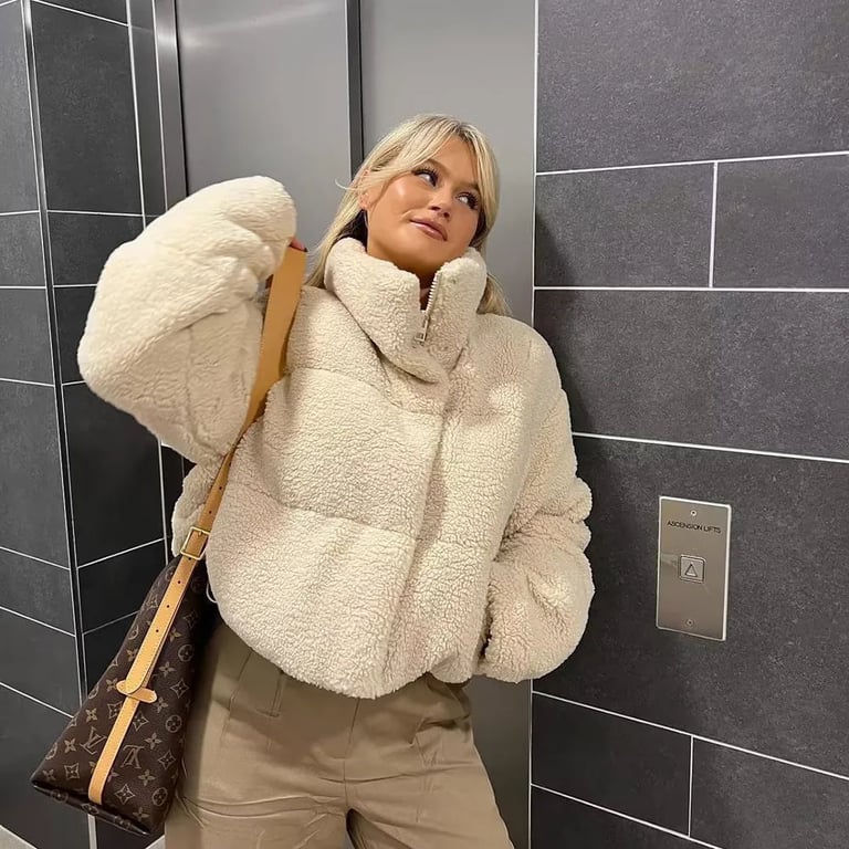Chaqueta de invierno beige para mujer.