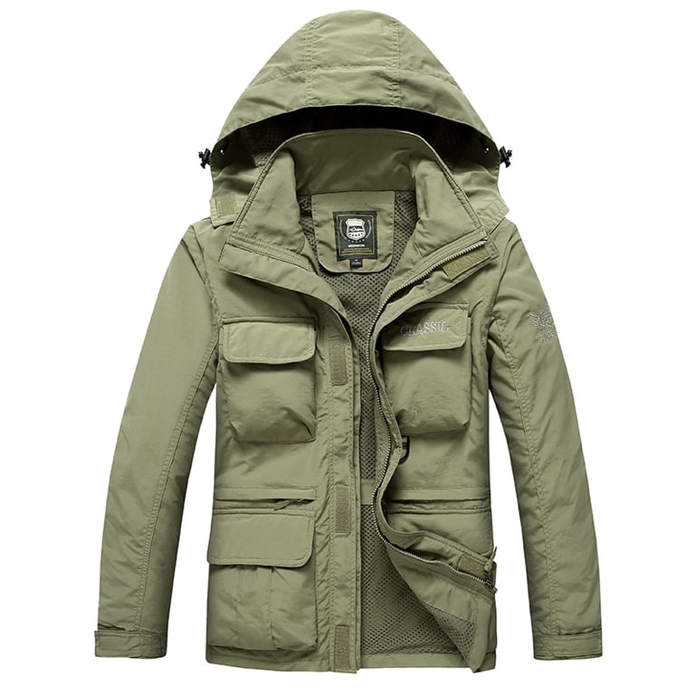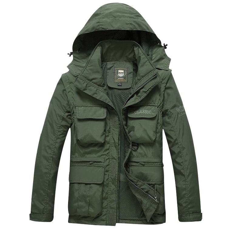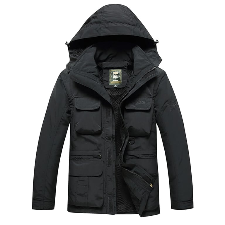 Chaqueta de invierno para hombre con capucha y múltiples bolsillos voluminosos
