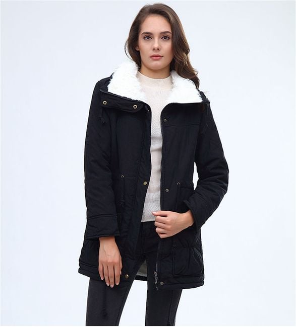 La chaqueta de invierno para mujer con forro acolchado está disponible en 2 colores.