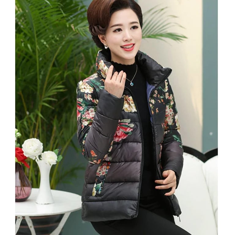 Una práctica chaqueta de invierno que se convertirá en su prenda diaria. El hermoso patrón floral es delicado. Adecuada para damas elegantes.