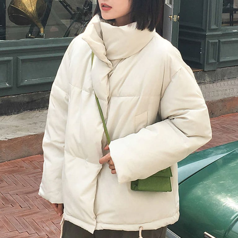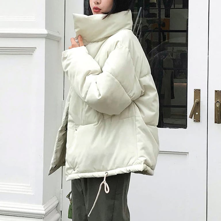 Chaqueta de invierno estilosa para mujer con acolchado. Corte holgado oversize con cuello alto y dos bolsillos laterales. Varias opciones de color.