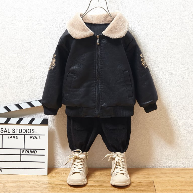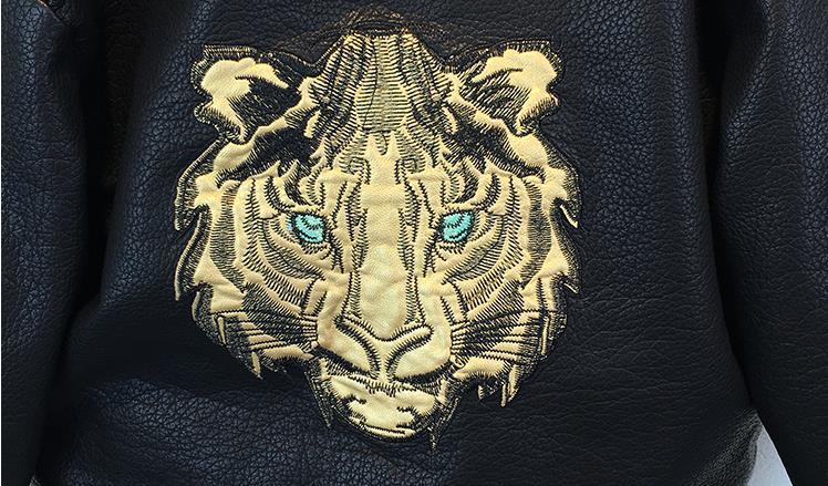 Chaqueta cool de piel sintética para niño con estampado de tigre en la espalda.
